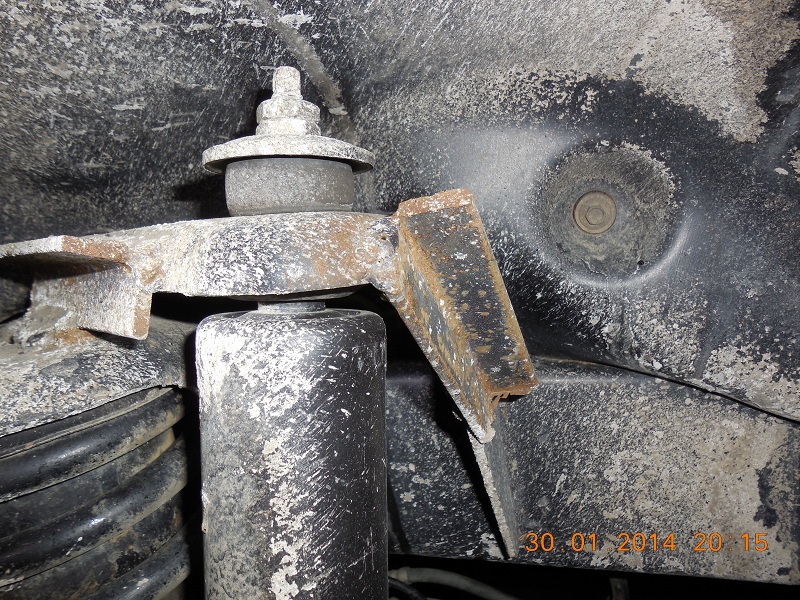 Лезем под низ. Ну сальники... ну уже смешно повторяться, что бОльшая их часть течёт, и низ коробки весь в говне. Про тормозные шланги не хочется повторяться, но это показатель того, каким местом думали люди, которые сооружали эту конструкцию. Никакого больше криминала по подвеске я снизу не увидел, кроме наваренных уголков - никогда не поверю, что их поставили туда от нефиг делать: либо трескаться пошло, либо на какой-то другой машине треснуло, а тут наварили превентивно.