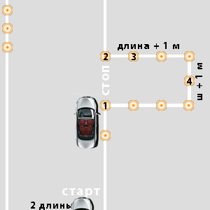 В ходе выполнения упражнения экзаменатор контролирует зоны «габаритного коридора», остановки перед линией «СТОП», а его помощник – зоны «габаритного коридора», старта.