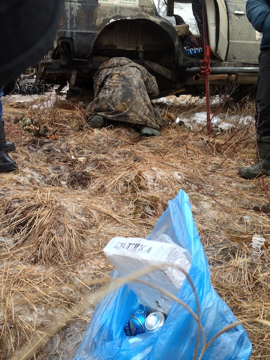 Приехали на Олу, и тут нас ждало пренеприятнейшее известие, один из экипажей жЫпов порвал полуось, ну и нам, как правильным посонам, да и вообще, чтобы в геи не записали))) надо подождать из города полуось, ну и передать страждущим.