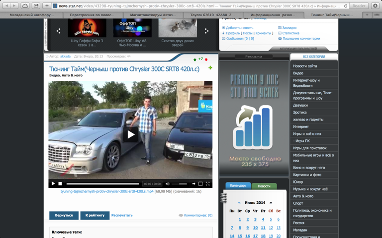 Блин, из мухи слона.. Представь в Москве бы жил... Только бы и занимался б, что выкладывал видяйки. Ну на такого рода случай вообще не стоит внимания обращать, даже в Маге.. ИМХО.