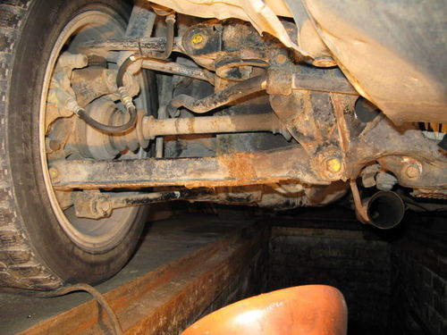 Удар в заднюю подвеску был сбоку слева. Такой, что деформировался подрамник и поломался нижний рычаг. Рычаг кто-то сварил и так и ездил.