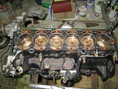 померили зазоры и стало очень радостно. На цилиндрах еще даже хон не стерся. Зазоры идеальны. Мотор с очень маленьким пробегом. Может, тыщ 20-30. А еще он оказался последнего поколения, т.е в нем есть дополнительные масляные форсунки для каждого поршня.