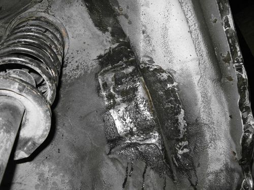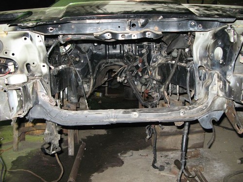 Впереди по кузову было не лучше. Там был помят лонжерон и телевизор. Телевизор порезали, поправили, приварили, как следует. Лонжерон тоже выровняли.