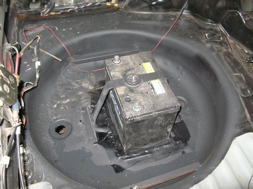 Чтобы проложить трубы под капотом, нужно убрать аккум, он мешает. Да и к тому же вес с морды убрать назад — полезно весьма. Сделали так: