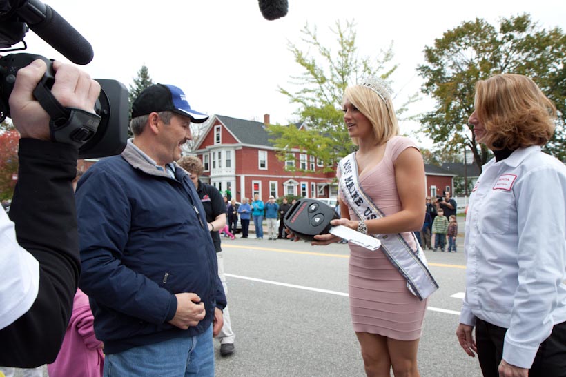На параде Джо получил подарок от Хонды — новенький седан Accord. Ключ от машины ему вручила мисс штата Мэн Эшли Марбл.