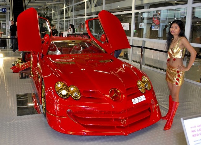Экстравагантный швейцарец корпел над золотым SLR 30000 часов и вложил в него 4,35 миллиона долларов. В отделке автомобиля было использовано золото 999 пробы. Частички драгоценного металла имеются даже в краске, которой покрыт кузов. Салон Mercedes SLR также отделан золотом и выкрашен в красный цвет.[/b]