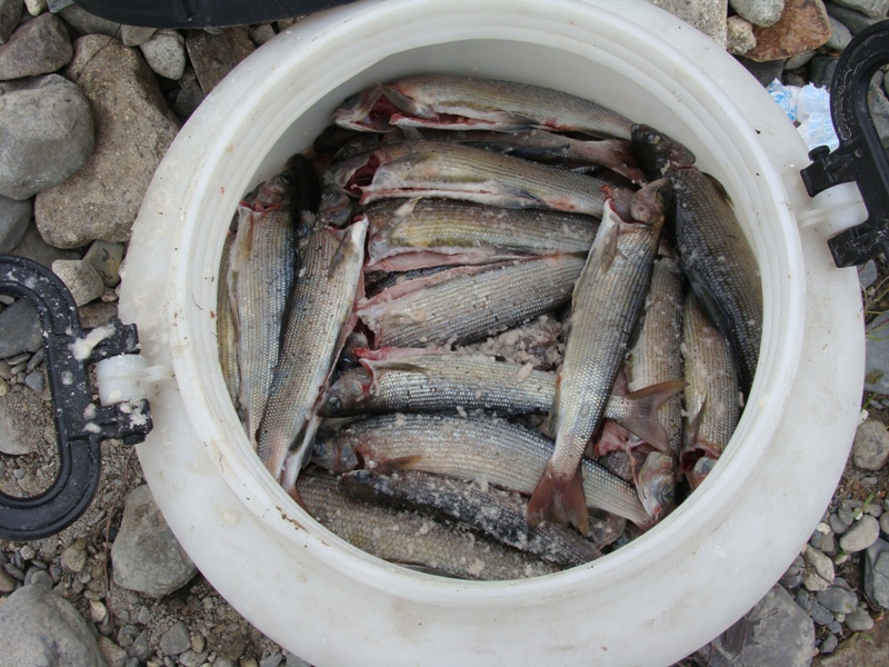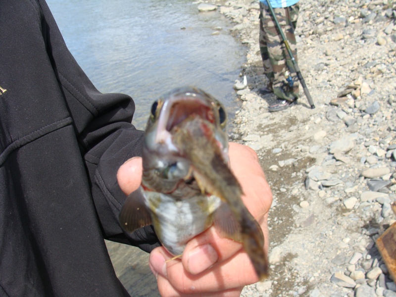 Кстати, по ходу дела проверяли чем он живот набивает, почти у всех желудки набиты, преимущественно комар и т.п. мелкий гнус. Мушку имитацию овода на рехнем поводке игнорировал в глухую.