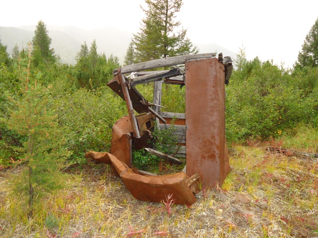 Пытаемся проехать по сопке к дальним разработкам по заросшей дороге, но упираемся в обрыв. Возвращаемся по той стороне ручья и доезжаем до когда-то жилого поселка.
